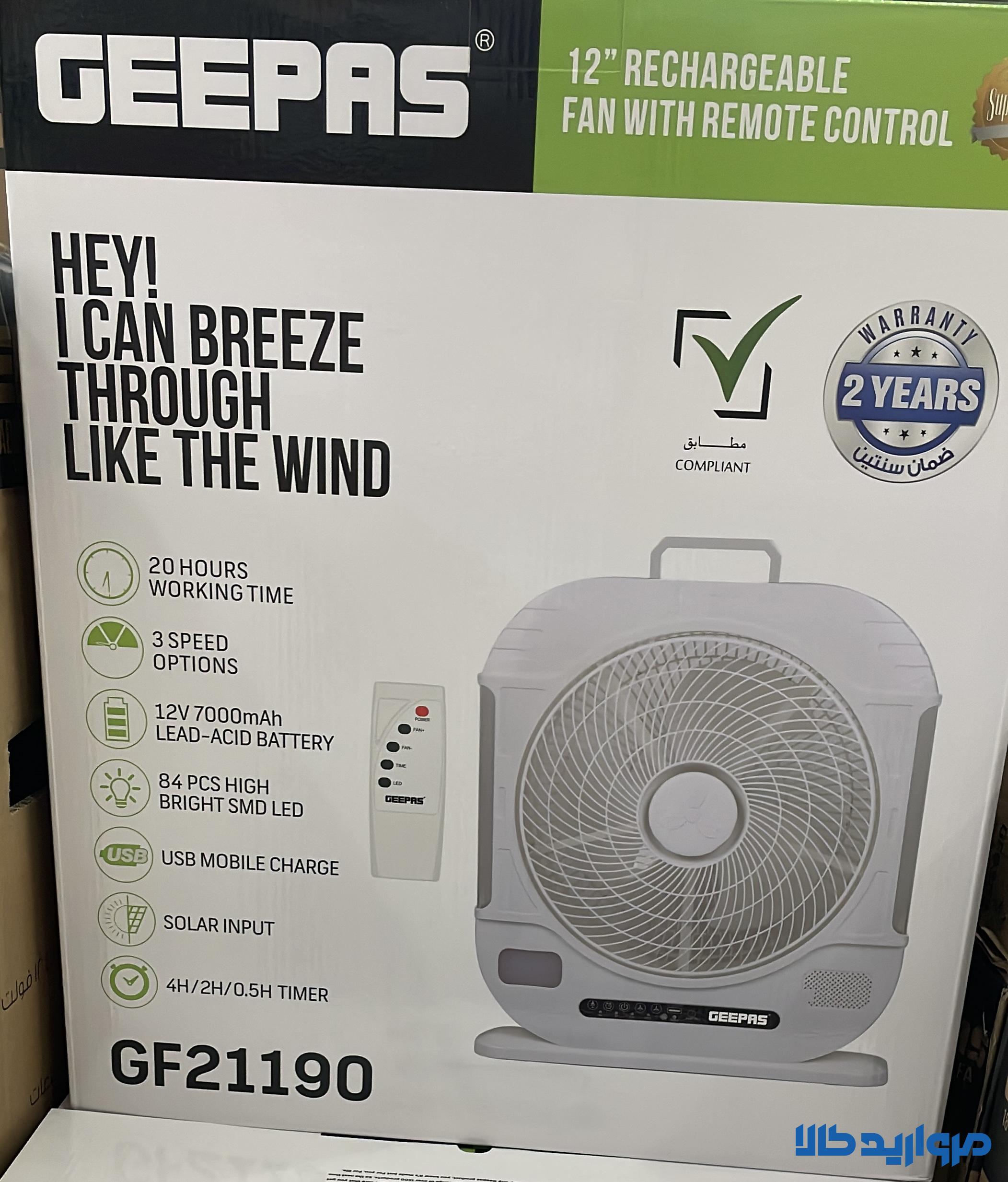 پنکه شارژی کنترل دار جیپاس مدل GF21190